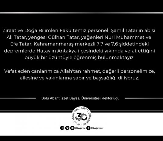 Merhum öğrencimize Allah'tan rahmet, ailesine, yakınlarına ve BAİBÜ ailemize...