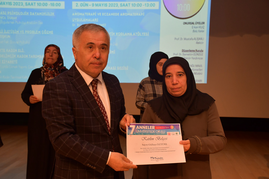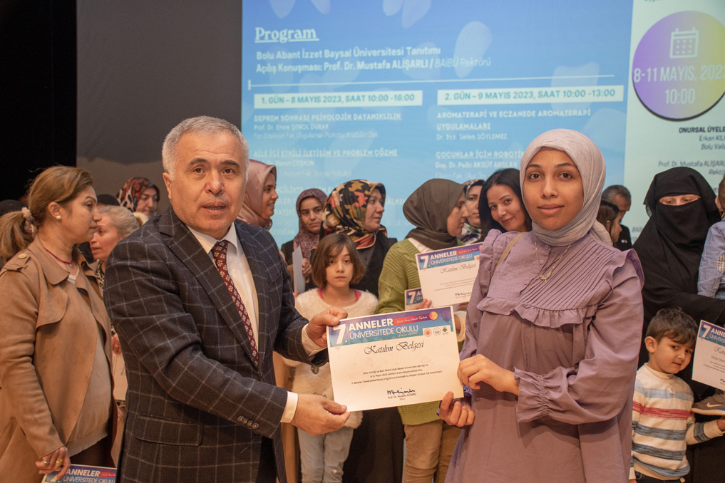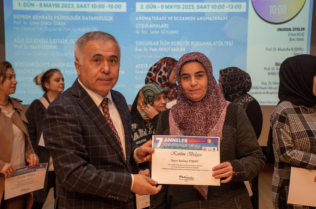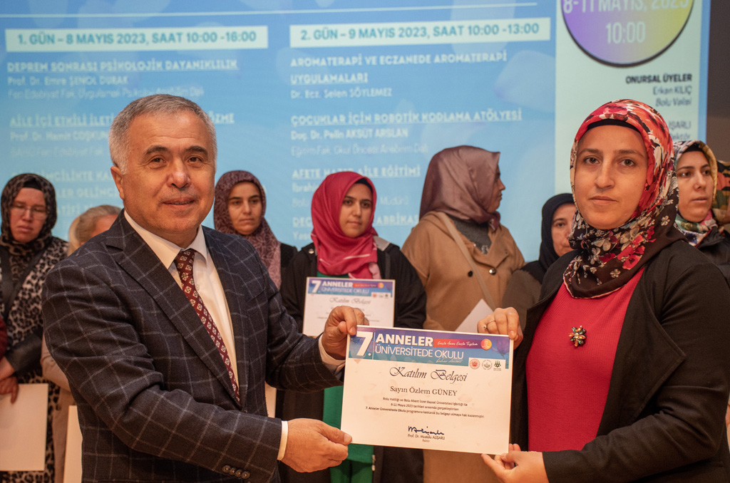 Bu dönem depremzede anne ve çocukların konuk olduğu 7. Anneler Üniversitede Okulu, İzzet Baysal Kültür Merkezi Mavi Salonda düzenlenen kapanış töreniyle sona erdi.