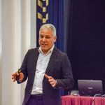 TÜBA tanıtım filminin gösterimi ile başlayan etkinlikte TÜBA Asli Üyesi ve Medipol Üniversitesi Öğretim Üyesi Prof. Dr. Hüseyin Arslan “Dijitalleşme Çağında Ulusal Güvenlik: Yeni Cepheler, Yeni Riskler ve 5G Ötesi Gerçeği” başlıklı sunumunu yaptı. Kendi özgeçmişinden bahseden Arslan teknolojinin gelişmesi ve dijitalleşmesiyle dünyada yaşanan dönüşüm hakkında bilgi verdi. Bazı mesleklerin zamanla kaybolacağını ifade eden Arslan kaybolan mesleklerin yerine yeni mesleklerin oluşacağını belirtti. I. Dünya Savaşının siper cephe savaşı olduğunu dile getiren Arslan günümüzde yaşanan savaşların ise siber cephe savaşı olduğuna dikkat çekti. “Veriyi kontrol eden dünyayı kontrol eder” diyen Arslan verinin ve verinin işlenmesinin önemine dikkat çekti. Tarım, sağlık, telekomünikasyon, ulaşım, savunma sanayi gibi sektörlerin dijital dönüşümünden bahseden Arslan dijital dönüşümün verimliliği artırdığını vurguladı.