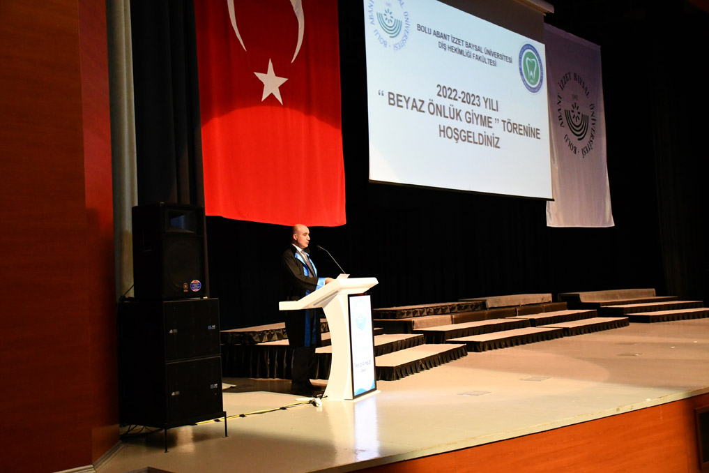 Vali Yardımcısı Abdullah Şen ise, “Beyaz önlük giyme töreninin 22 Kasım Dünya Diş Hekimliği Günü’nde yapılması çok anlamlıdır. Bu vesile ile bugün aramızda olamayan Sayın Valimizin selamlarını sizlere hassaten iletiyorum. Hekimlik çok özel, çok hassas bir meslek. Diş Hekimliği de hekimliğin özel bir türü. Diş Hekimliği cerrahinin yanı sıra aynı zamanda el becerisi de gerektiren bir meslek. Bu nedenle de önemli. Türkiye sıralamalarında da yüzde 1’lik dilime girerek geliyorsunuz üniversitemize. Gayet anlamlı ve değerli bir öğrenci kitlesine hitap etmekten dolayı memnuniyet duyuyorum. Hekimlikte en önemli mesele etiktir. Yani yaptığınız meslekte, kamu görevi ve diğer her türlü işte de bu böyle, mükerrem bir varlık olarak muhatap olduğumuz kişinin Allah’ın bir emaneti, Allah’ın bir kulu olduğunu, insanların eşit bir varlık olduğunu ömür boyu aklınızdan çıkarmamamız gerekiyor. Mesleğin henüz çok başındasınız. Bu dönemdeki heyecanınız, atacağınız dostluklar çok kıymetlidir. Bunlara sahip çıkın, arttırmaya çalışın.” ifadelerini kullandı.