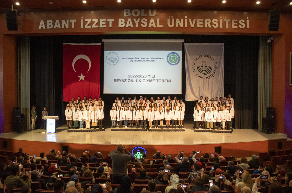 Bolu Abant İzzet Baysal Üniversitesi Diş Hekimliği Fakültesi’nde 2022-2023 Akademik Yılı Beyaz Önlük Giyme töreni gerçekleştirildi. 22 Kasım Dünya Diş Hekimliği Günü’nde düzenlenen törende beyaz önlüklerini giyen birinci sınıf öğrencileri, mesleğe ilk adımı atmanın heyecanını yaşadı.