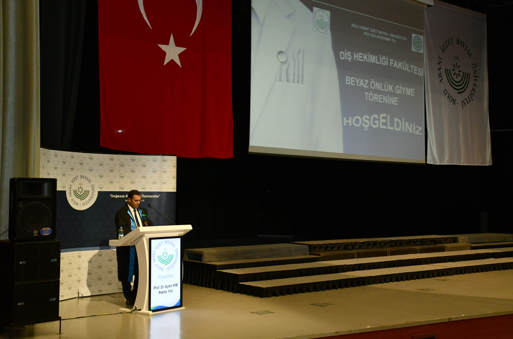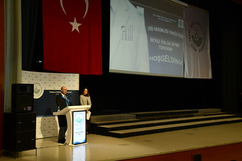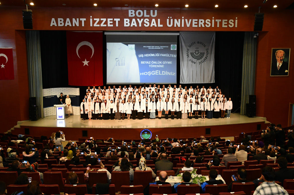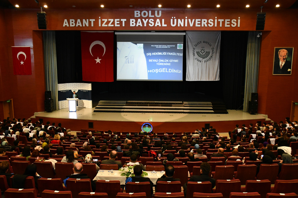 Bolu Abant İzzet Baysal Üniversitesi (BAİBÜ) Diş Hekimliği Fakültesi Beyaz Önlük Giyme Töreni Kongre Merkezi Bordo Salonda gerçekleştirildi