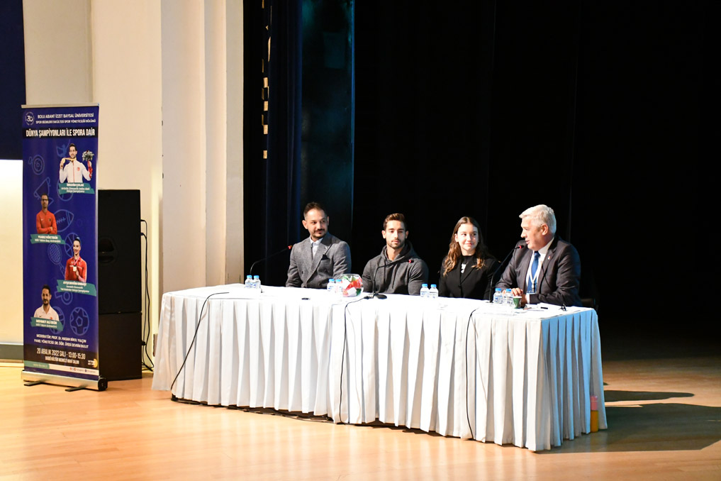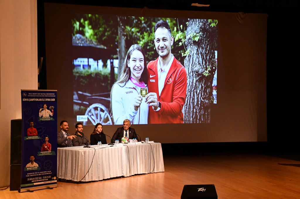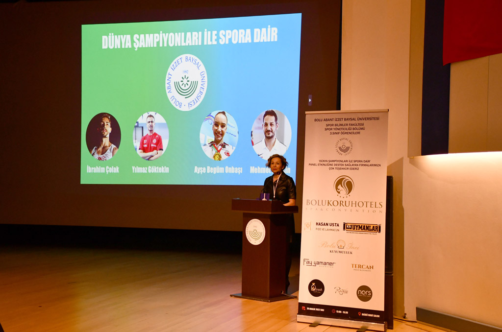 Bolu Abant İzzet Baysal Üniversitesi (BAİBÜ) Spor Bilimleri Fakültesi Spor Yöneticiliği Bölümü öğrencilerinin düzenlediği Dünya Şampiyonlarıyla Spora Dair Paneli BAİBÜ Kültür Merkezi Mavi Salon’da gerçekleştirildi.