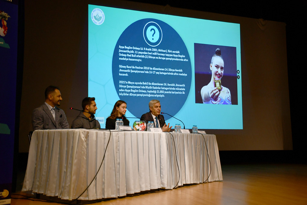 Panelde Aerobik Cimnastik Dünya Şampiyonu Ayşe Begüm Onbaşı, Artistik Cimnastik Halka Aleti Dünya Şampiyonu İbrahim Çolak ve Ayşe Begüm Onbaşı’nın antrenörü Mehmet Ali Ekin moderatör Türkiye Jimnastik Federasyonu Asbaşkanı ve BAİBÜ Spor Bilimleri Fakültesi Öğretim Üyesi Prof. Dr. Hasan Birol Yalçın’ın sorularını yanıtladı. Panelde Onbaşı, nazik davetten duyduğu memnuniyeti ifade ederken Çolak, panelde olmaktan dolayı mutlu olduğunu belirtti. Onbaşı’nın antrenörü Ekin ise panele davet edildiği için teşekkür etti. Moderatör Yalçın, panelistlerin kendilerine yapılan daveti geri çevirmeyip panele katıldıkları için panelistlere teşekkür etti. Panelde Onbaşı, Çolak ve Ekin şampiyonluk anında neler hissettiklerini katılımcılara aktardı. Panelistler şampiyon olabilmek için verdikleri emek hakkında bilgi verip bundan sonraki hedeflerinden bahsetti.