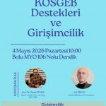 KOSGEB Bolu İl Müdürlüğü ve Üniversitemiz iş birliğiyle gerçekleştirilecek olan seminerde, girişimcilik süreçleri ve güncel KOSGEB destekleri ele alınacaktır.