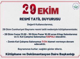 Kurban Bayramı münasebetiyle 19 Ağustos 2019 Pazartesi günü saat 11.00‘de Kültür