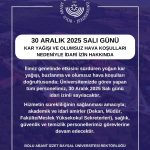 İlimiz genelinde etkisini sürdüren yoğun kar yağışı, buzlanma ve olumsuz hava koşulları doğrultusunda; Üniversitemizde görev yapan tüm personelimiz, 30 Aralık 2025 Salı günü idari...