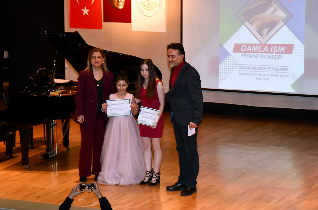 Konserin sonunda Prof. Dr. Dolunay Akgül Barış ve Prof. Dr. Ahmet Serkan Ece tarafından Damla Işık ve Elif Ceylan’a teşekkür belgesi verildi.