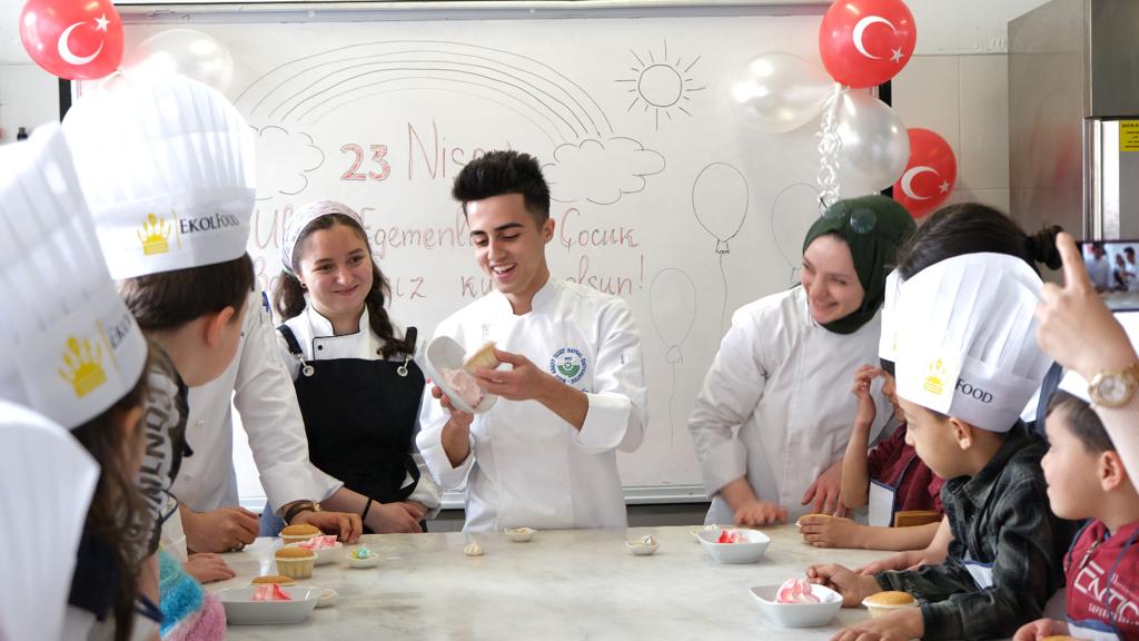 Mengenli minik öğrenciler, 23 Nisan Ulusal Egemenlik ve Çocuk Bayramı coşkusuna, üniversiteli ağabey ve ablalarıyla birlikte hazırladıkları lezzet etkinliğiyle başladı.