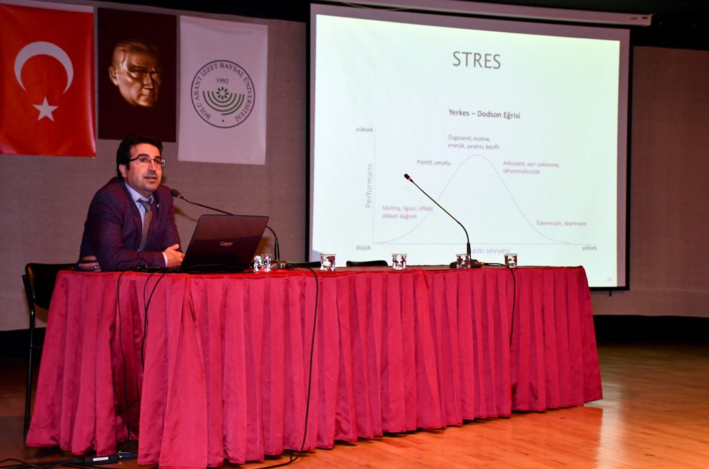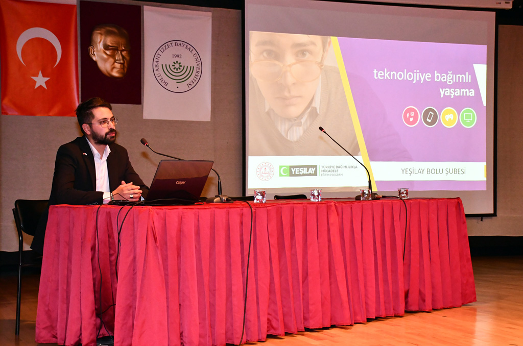 Demirkol’un konuşmasını bitirmesinin ardından Bolu Abant İzzet Baysal Üniversitesi (BAİBÜ) Öğr. Üyesi Prof. Dr. Hamit Coşkun “Gençlerde Mutluluk” konulu sunum yaparken, Bolu İl Emniyet Müdürlüğü’nde görevli polis memuru Mehmet Ali Akdemir “Güvenli ve Bilinçli İnternet Kullanımı, Siber Zorbalık ve Dolandırıcılık” konulu, Üniversitemizde görev yapan Uzman Psikolog Evgin Miçooğulları “Stres ve Stresle Başa Çıkma” konulu, Yeşilay’da görev yapan Erhan Demirtaş “Teknoloji Bağımlılığı” konulu sunum yaptı ve son olarak Yeşilay’da görevli Elif Karaköse Yeşilay Danışmanlık Merkezi’nin (YEDAM) tanıtımını yaptı.