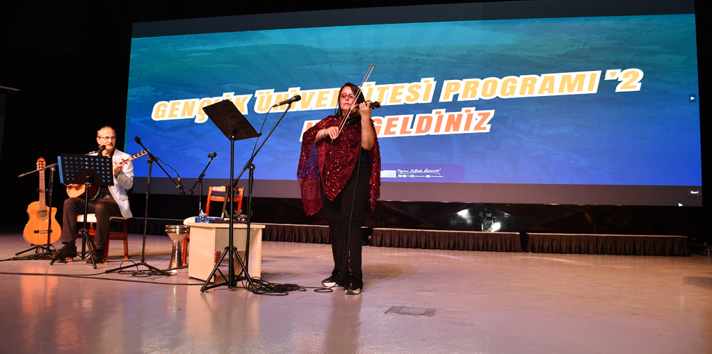 Öğrenciler, 3 gün süren Gençlik Üniversitesi’nin yorgunluğunu özel bir konserle attı. Kemanda Üniversitemiz Eğitim Fakültesi Öğretim Görevlisi Gamze Çalık Çetin ve bağlamada Zübeyde Hanım Kız Mesleki ve Teknik Anadolu Lisesi Öğretmeni İbrahim Çetin’in, Aşık Veysel’den Neşet Ertaş’a Cem Karaca’dan Haluk Levent’e kadar geniş bir repertuvarda türkü ve şarkılar söyledikleri konser, öğrencilerden büyük beğeni topladı ve tam not aldı.