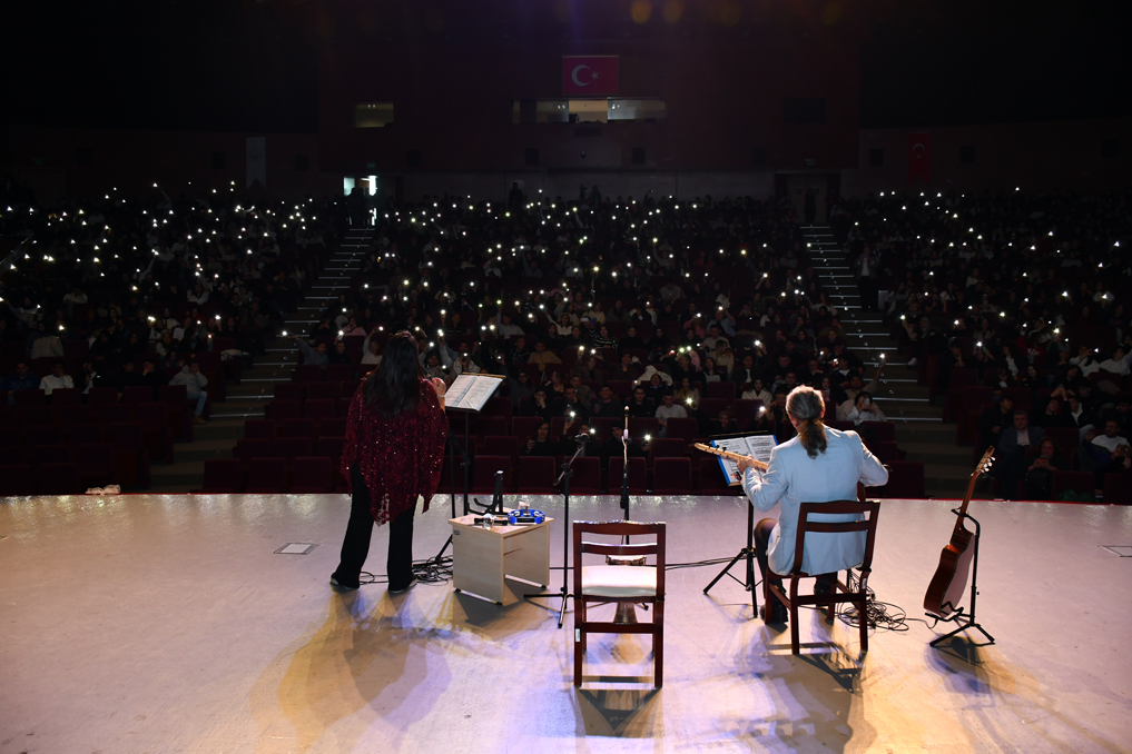 Şarkı aralarında öğrencilere tavsiyelerde bulunan iki değerli sanatçı, “Mesleğiniz ne olursa olsun, bir sanat dalıyla mutlaka ilgilenin; bu sanat da müzik olsun.” temennisinde bulundu.