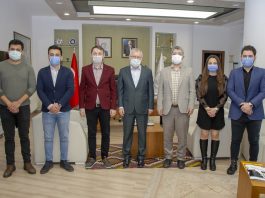 Yeni Dünya Vakfı Başkanı Mahmut Göksu, vakfın yönetim kadrosuyla birlikte Rektör Prof. Dr. Mustafa Alişarlı’yı makamında ziyaret etti.