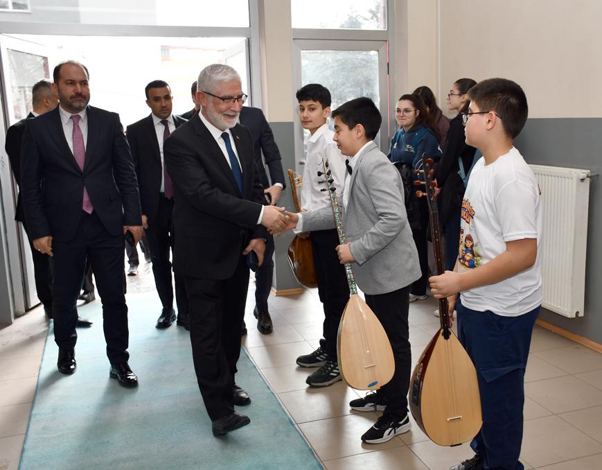 Konuşmasında Türk musikisinin önemine de vurgu yapan Prof. Dr. Kaçar, öğrencilere seslenerek, özetle “Türk devletleri ilk kurulduğu zaman, devletin egemenliği ve bağımsızlığı sancak ve davul ile temsil ediliyordu. Sancak, bağımsızlığı temsil ediyor; davul ise, güçlü olmayı ve devletin sesinin gür çıkmasını temsil ediyor. Davul, bir müzik aleti. Çok güçlü bir sesi var ve savaşlara Mehter başta olmak üzere 11 davul öncülüğünde gidiliyordu. Buranın bir musikisi oluştu. Bütün musiki türlerimizin kökeninde türkülerimiz var, şarkılarımız var. Biz de bu projeyle sizlere türkülerimizi, şarkılarımızı öğreteceğiz. Unutmayalım ki, bütün bu değerlerimizin çocuklarımıza anlatılacağı yer önce aile, sonra milli eğitim.” ifadelerini kullandı.