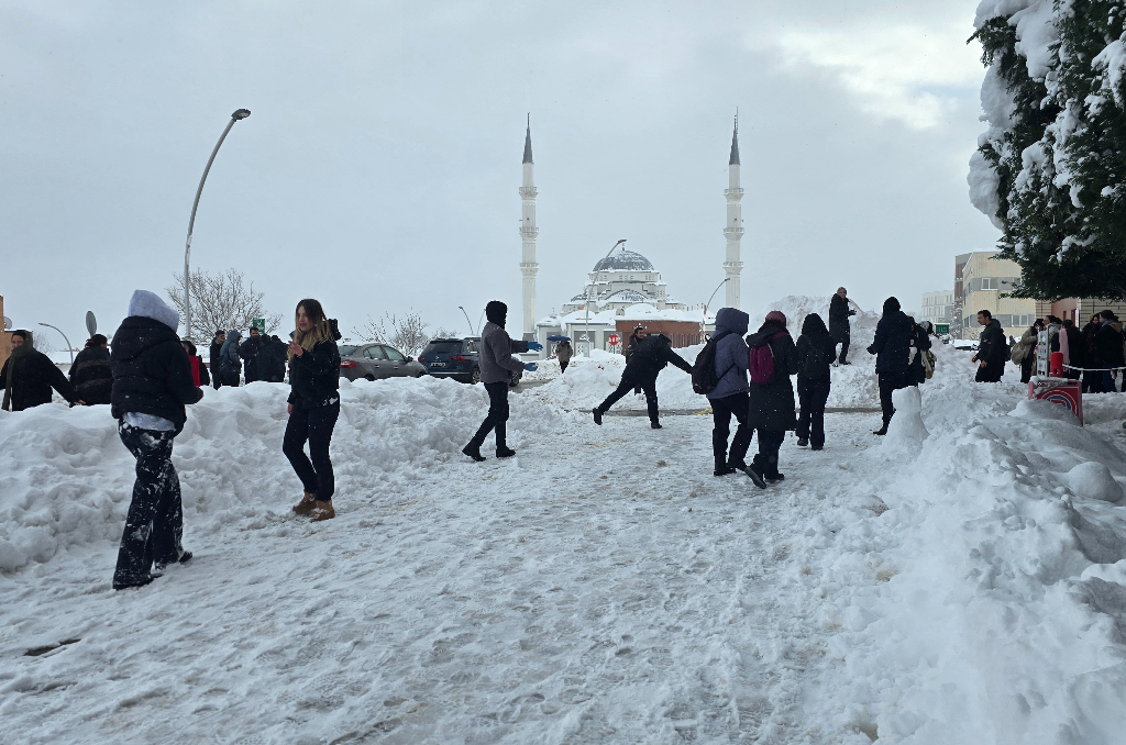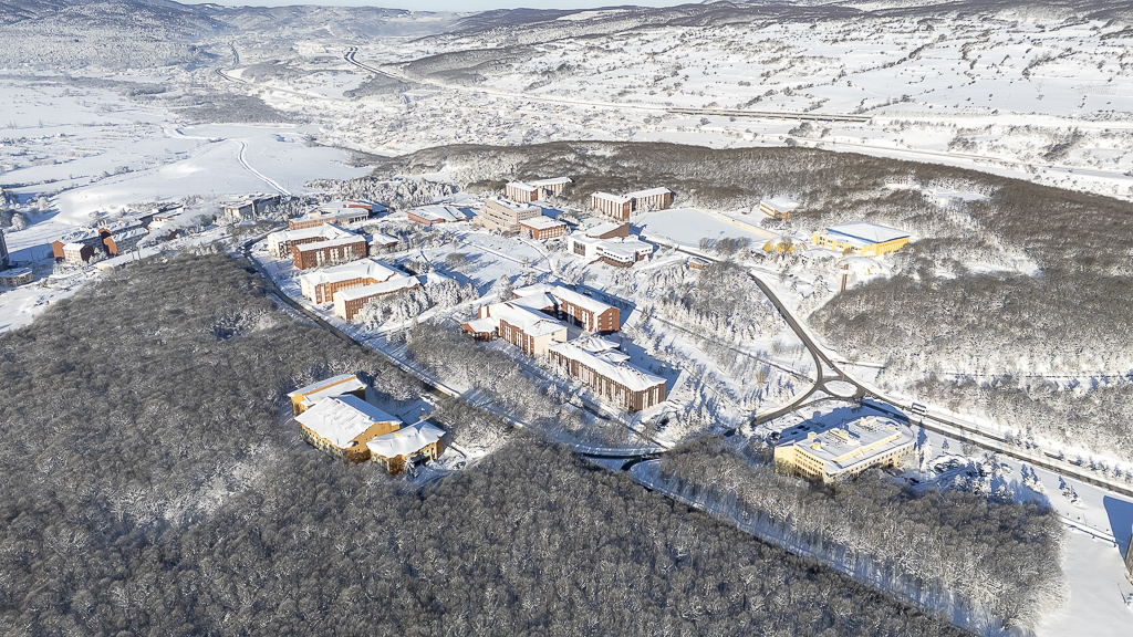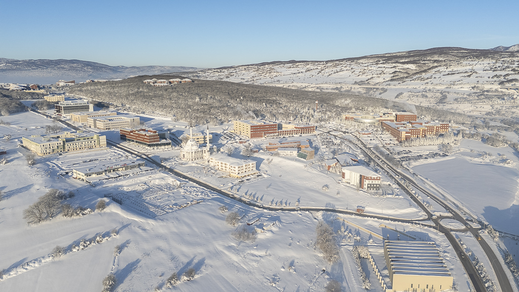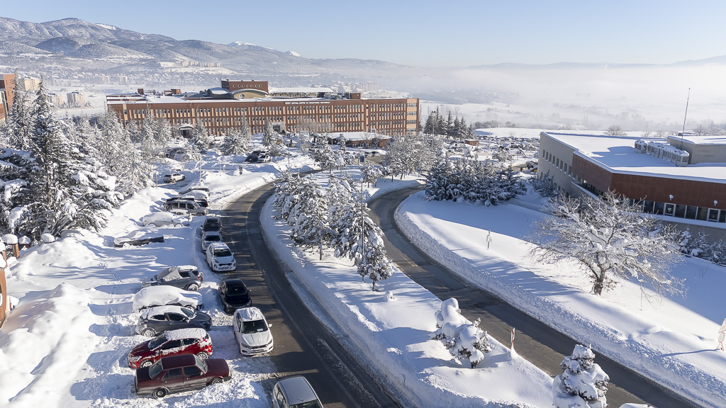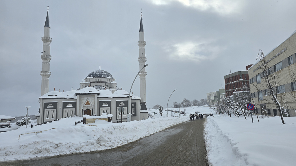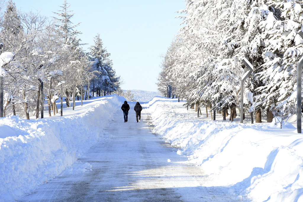 Üniversitemiz Gölköy Kampüsü, Bolu’da yaşanan yoğun kar yağışının ardından beyaz gelinliğini giydi. Karın oluşturduğu eşsiz manzaralar görenleri büyülerken Gölköy Kampüsünde bulunan öğrenciler karın tadını çıkarıyor. Kampüsün içerisinde ve etrafında bulunan ağaçların dallarında biriken karlar sanat eseri gibi durup izleyenleri mest ediyor. Kampüs içerisinde bulunan ve kampüse gelen yolların iş makineleriyle sürekli açık tutulması, ulaşımın sağlıklı bir biçimde devam etmesini sağlarken güneşin yüzünü göstermesiyle Gölköy Kampüsünde oluşan kartpostallık manzara kampüste bulunanlara görsel şölen yaşatıyor.