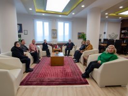 Ziyaret sırasında, Rektör Coşkun, Doğansel’e çini bir...