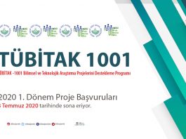 TÜBİTAK-1001 Bilimsel ve Teknolojik Araştırma Projelerini Destekleme Programı 2020 yılı 1. dönem başvuruları 3 Temmuz 2020 tarihine kadar devam ediyor.