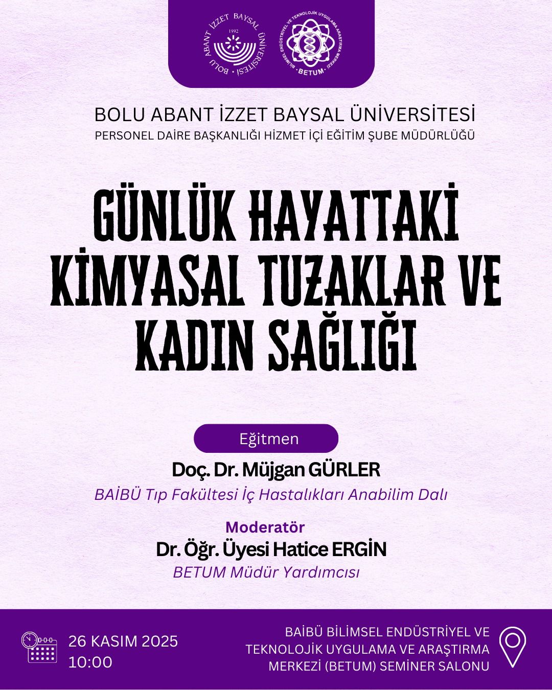 • Yer: BAİBÜ Bilimsel Endüstriyel ve Teknolojik Uygulama ve Araştırma Merkezi (BETUM) Seminer Salonu