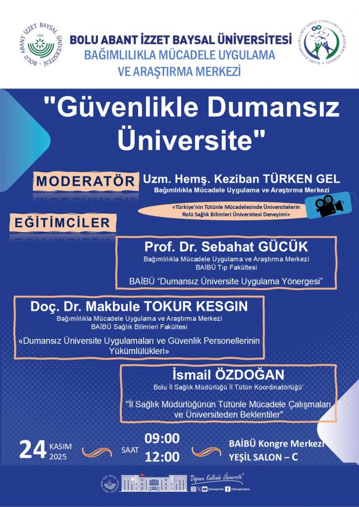 Bolu Abant İzzet Baysal Üniversitesi Bağımlılıkla Mücadele Uygulama ve Araştırma Merkezi tarafından “Güvenlikle Dumansız Üniversite” başlıklı eğitim programı düzenlenecektir.