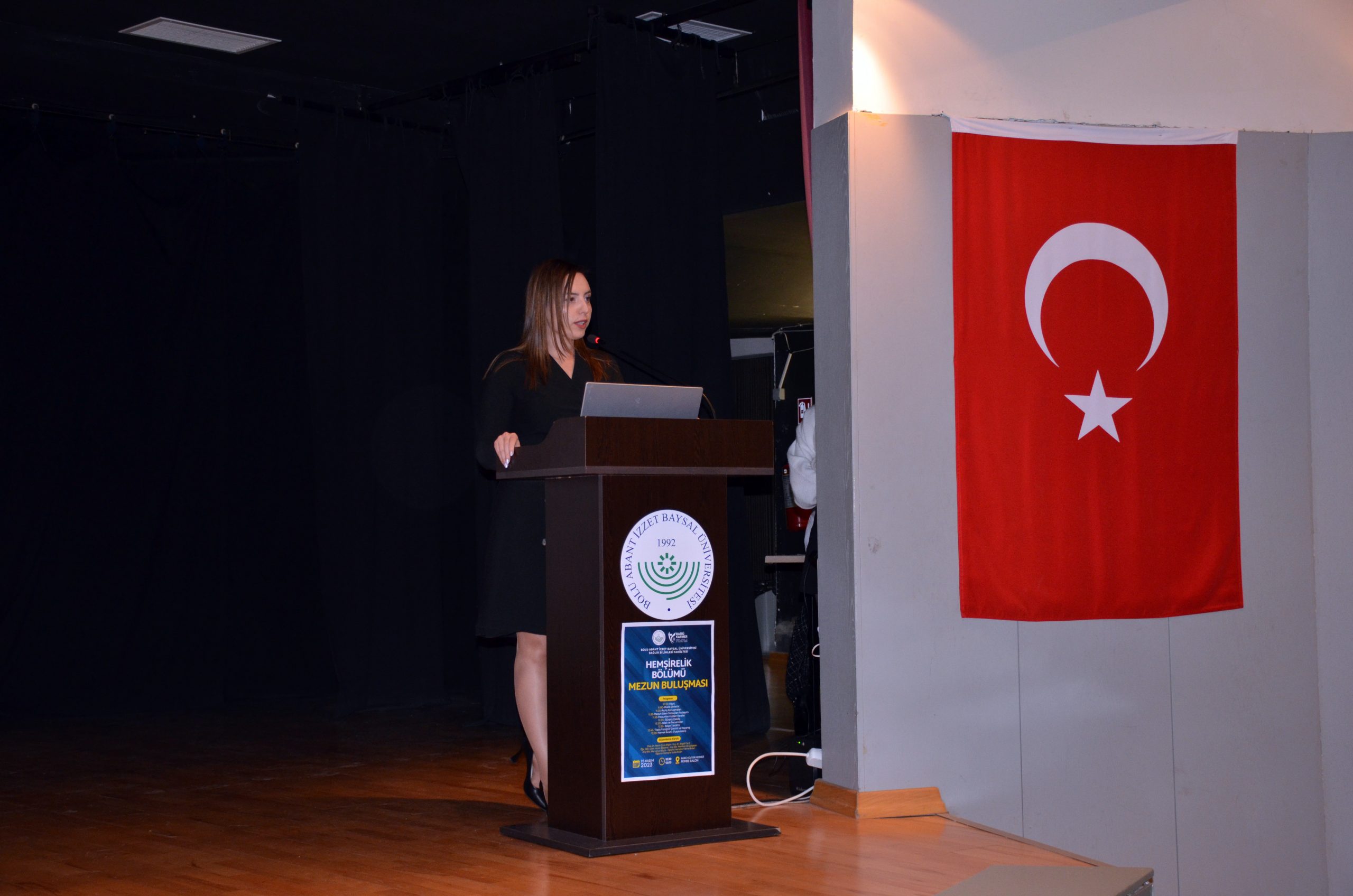 Etkinliğin açılış konuşmasını Üniversitemiz Sağlık Bilimleri Fakültesi Hemşirelik Bölümü mezunu Arş. Gör. Mervenur Böyük yaptı. Bir bölümünün referansının mezunları olduğunu kaydeden Böyük, “Bilime ilgi duyan, meraklı, araştırmacı, inovatif, hasta haklarına saygılı, hemşireliğin etik ilke ve kodlarına bağlı, sosyal transkripti güçlü mezunlar yetiştirmek temel hedefler arasındadır.” dedi.