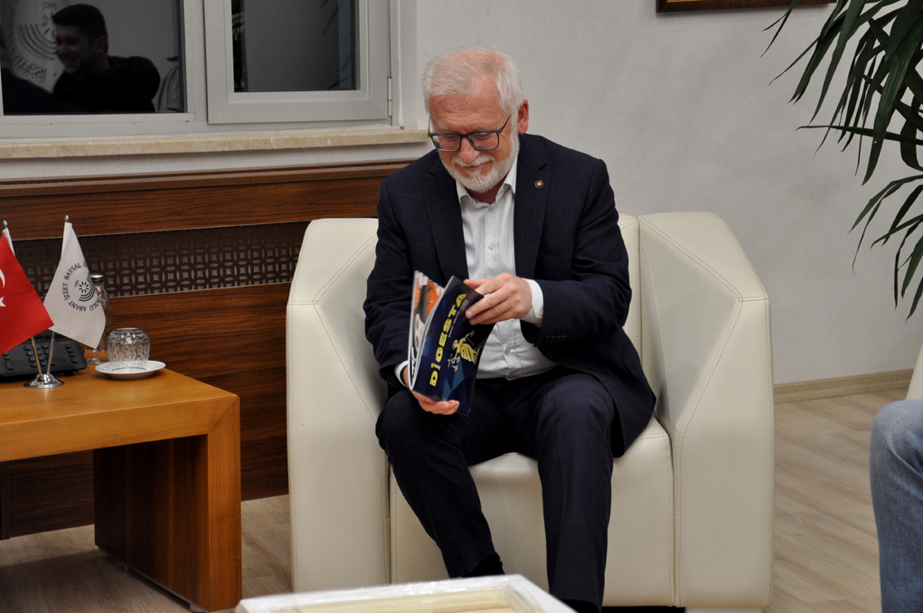 Ziyarete gelen topluluk üyeleri, topluluk tarafından yayımlanan Digesta Hukuk Kültür Sanat Dergisi’ni Rektörümüze hediye etti. Hediyelerini dikkatle inceleyen Rektörümüz, topluluk üyelerine bu nazik ziyaretlerinden dolayı teşekkürlerini iletti ve başarılarının devamını diledi. Görüşme, keyifli sohbetin ardından çekilen toplu fotoğraflarla sona erdi.