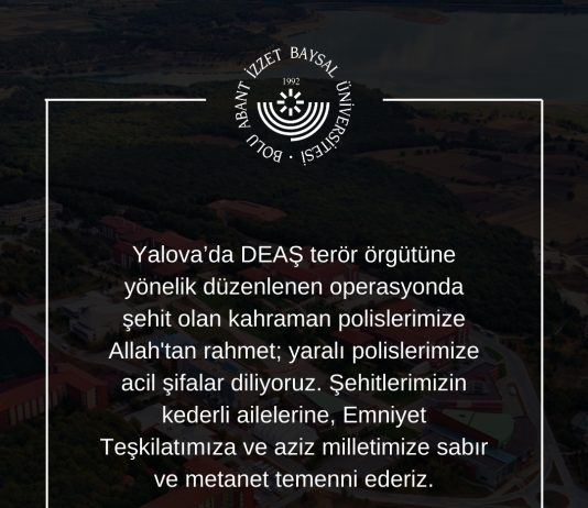 Üniversitemiz Bolu Meslek Yüksekokulu Yönetim ve Organizasyon Bölümü Öğretim Üyelerinden Doç. Dr. Serdar Çakan’ın babasının vefat ettiğini üzüntüyle öğrenmiş bulunmaktayız.