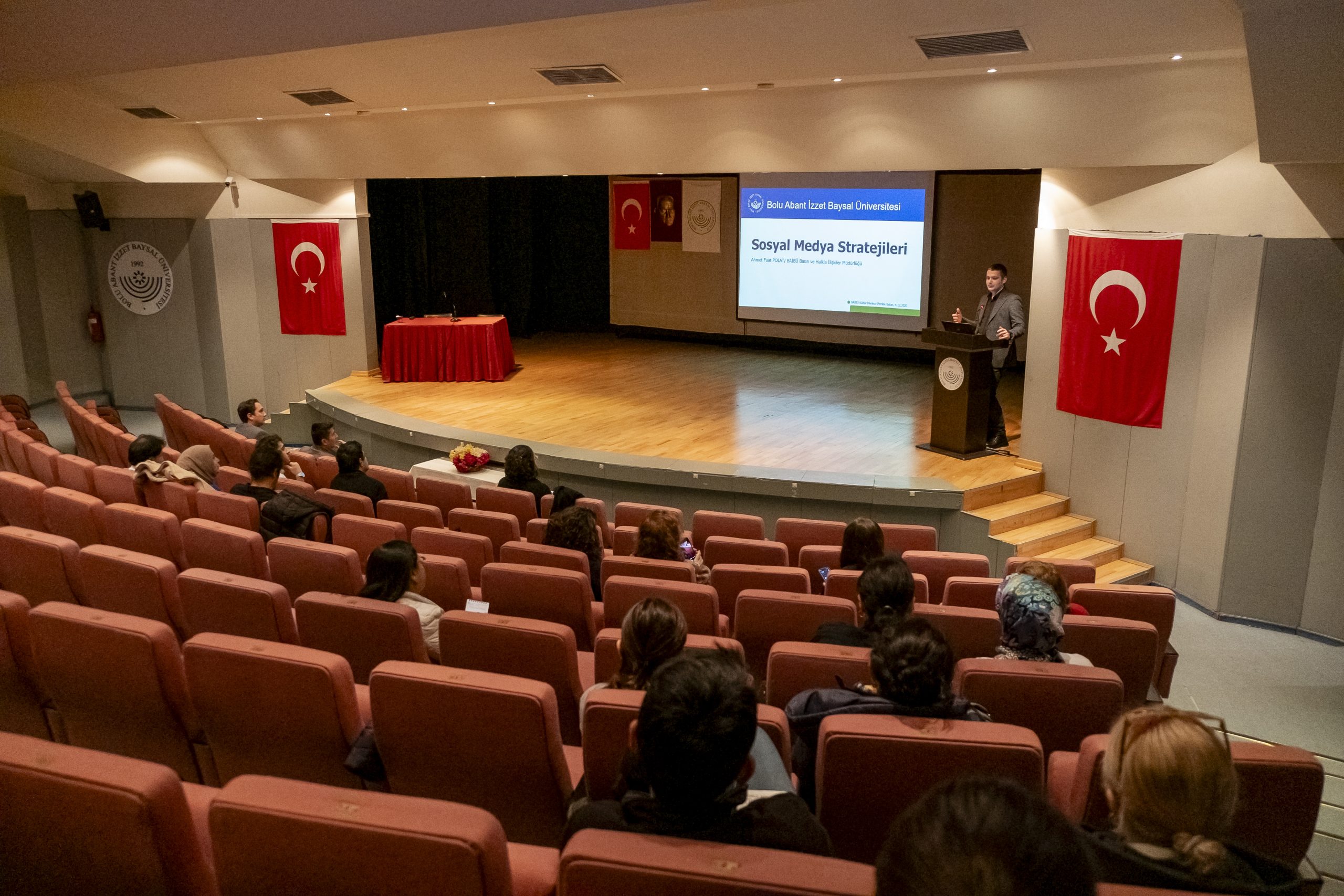 Bolu Abant İzzet Baysal Üniversitesi (BAİBÜ) İletişim Koordinatörlüğü Kültür Merkezi Pembe Salonda iletişim temsilcilerine yönelik hizmet içi eğitim verdi.