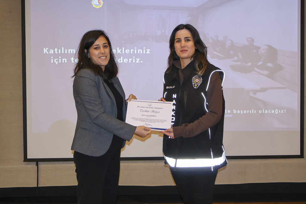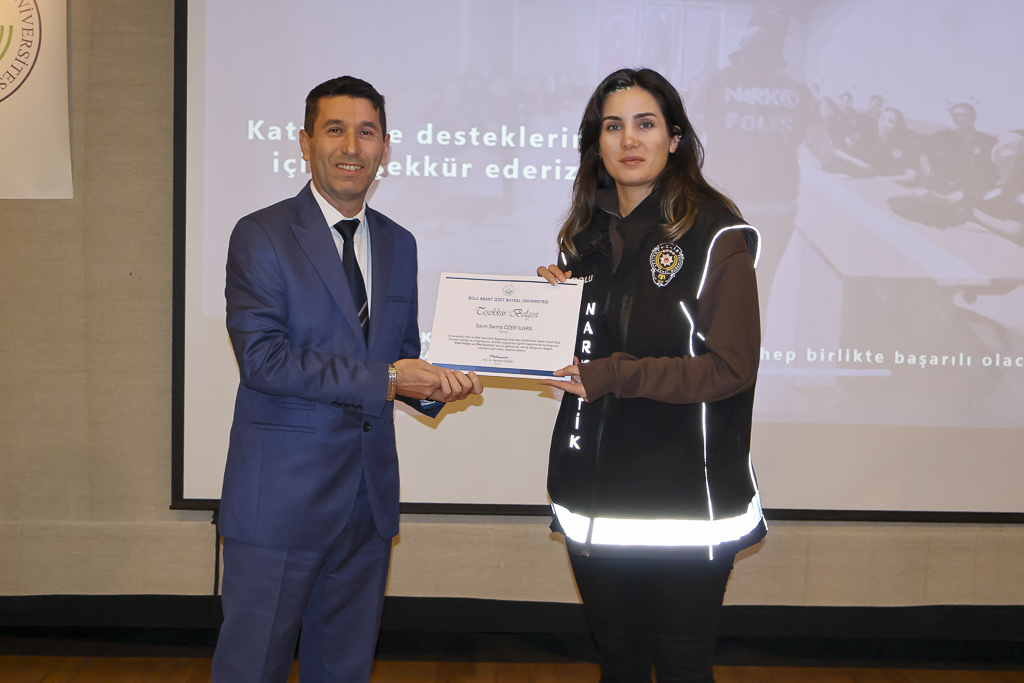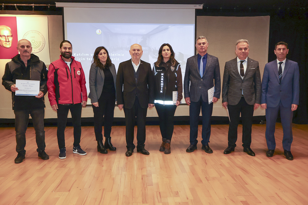 Bolu Abant İzzet Baysal Üniversitesi Kültür Merkezi Pembe Salon’da düzenlenen etkinliğe Bolu İl Emniyet Müdürlüğü görevlileri, Üniversitemizde görev yapan özel güvenlik görevlileri ve öğrenciler katıldı.