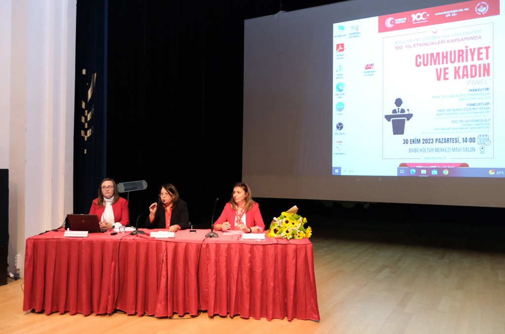 Cumhuriyet ve Kadın konulu panelin moderatörlüğünü Eğitim Fakültesi Öğretim Üyesi Prof. Dr. İlknur Çifci Tekinarslan yaptı. İstanbul Üniversitesi Atatürk İlkeleri ve İnkılap Tarihi Enstitüsü Öğretim Üyesi Doç. Dr. Hayrünisa Alp, “Osmanlı’dan Cumhuriyete Türkiye’de Kadınların Toplumsal Görünürlüğü” konusunda sunum yaptı.