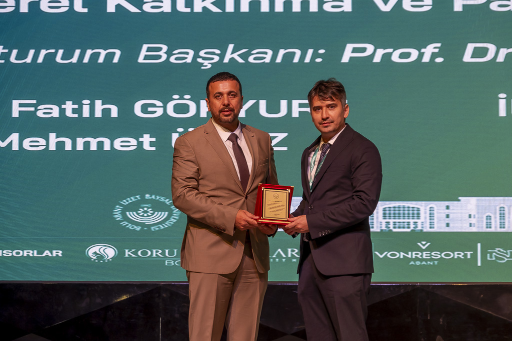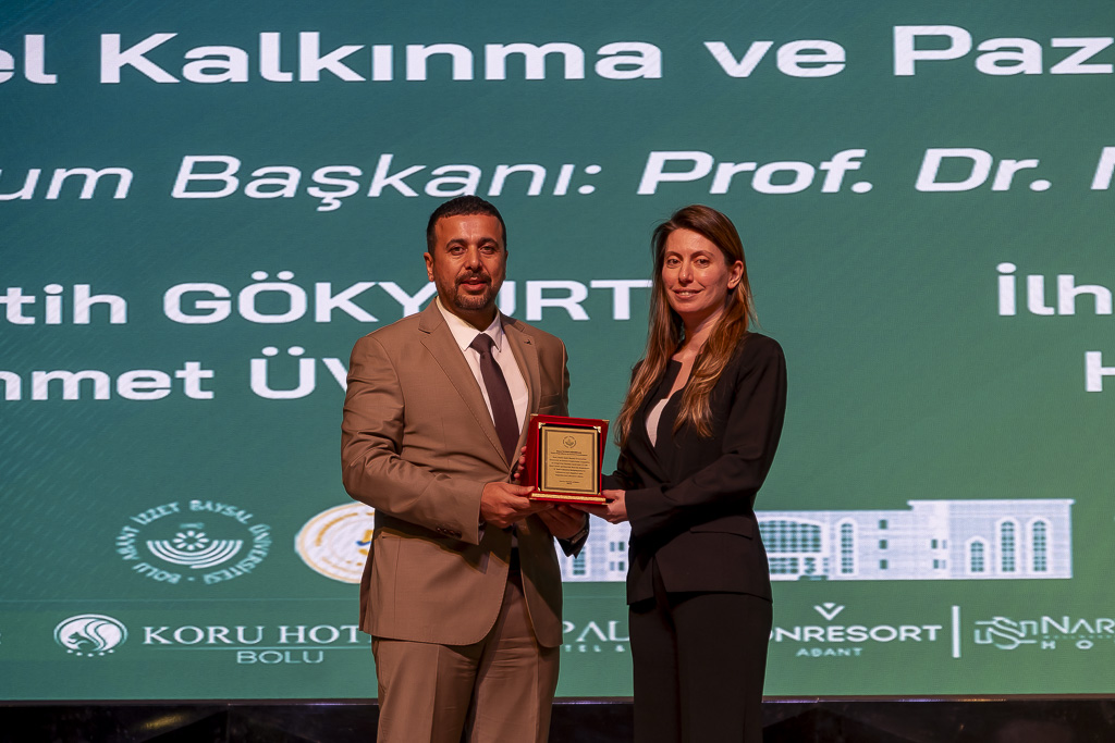 Soru cevap bölümünün oturumda konuşmacı ve oturum başkanı olarak yer alanlara Üniversitemiz Rektör Yardımcısı Prof. Dr. Coşkun Karaca tarafından plaket verildi.