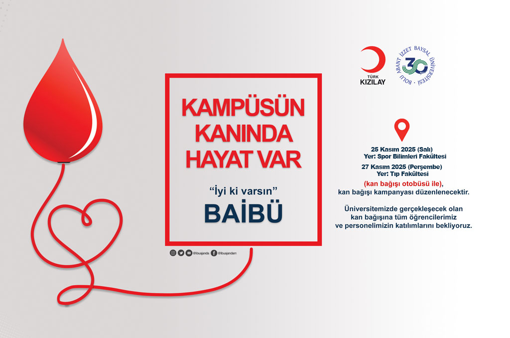 Türkiye Kızılay Derneği Kan Hizmetleri Genel Müdürlüğü Batı Karadeniz Bölge Kan Merkezi ve Rektörlüğümüz iş birliğiyle, toplum sağlığına katkı sağlamak ve gönüllü kan bağışını teşvik etmek amacıyla üniversitemizde “Kampüsün Kanında Hayat Var Kampanyası” düzenlenmektedir.