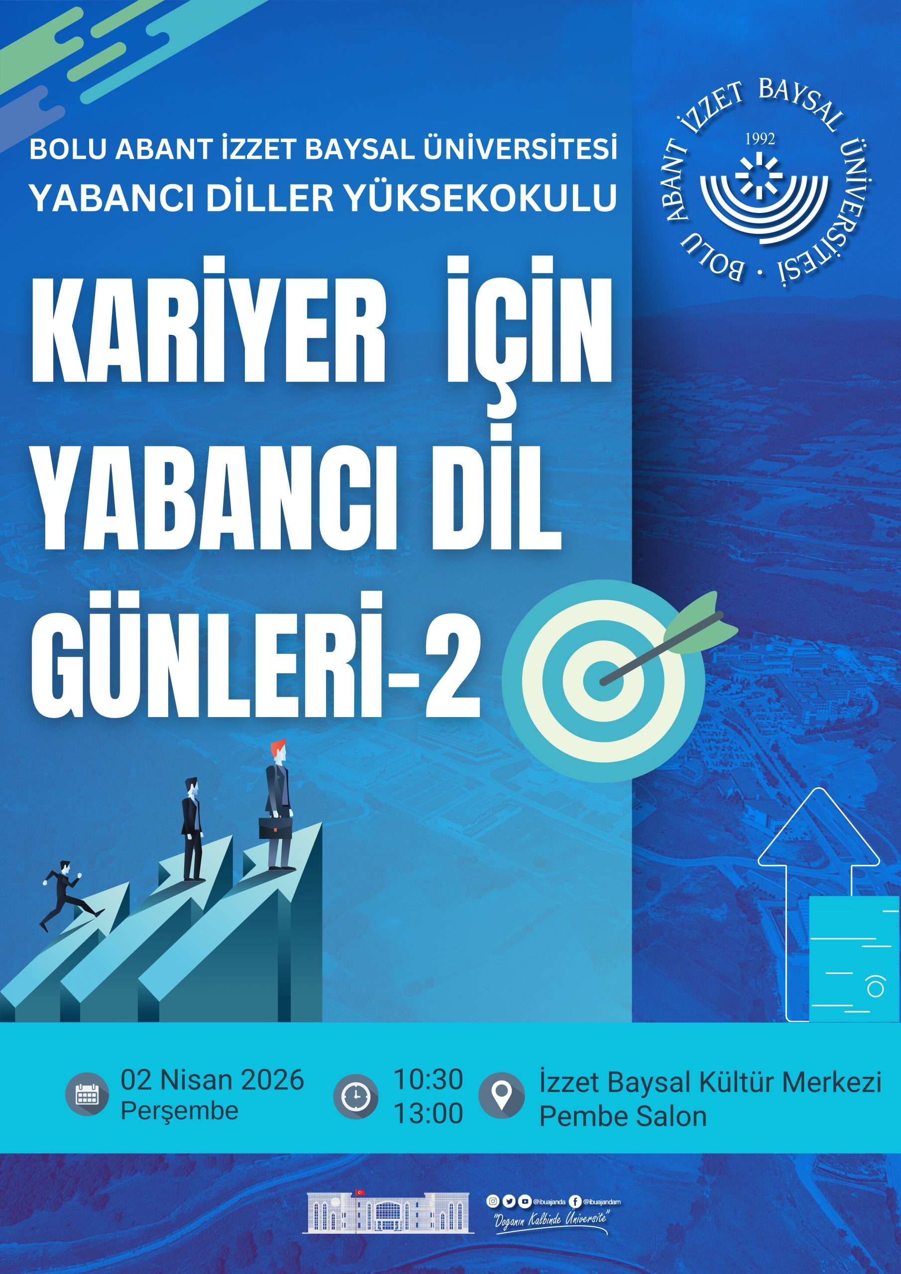 Kariyer İçin Yabancı Dil Günleri-2 Etkinliği Düzenleniyor 27 Mart 2026 Tarih: 02 Nisan 2026, Perşembe Saat: 10:30 – 13:00 Yer: İzzet Baysal Kültür Merkezi, Pembe Salon Mevcut makalenin kısa URL'si : https://ajanda.ibu.edu.tr/p2bo