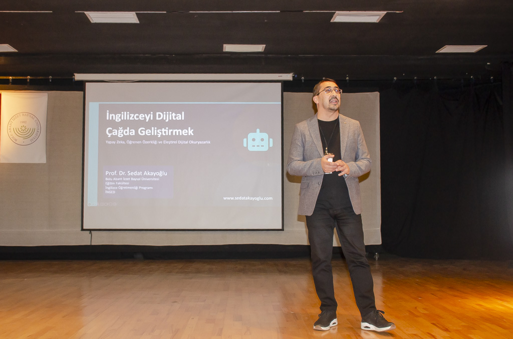 Öğleden sonra gerçekleşen dördüncü oturumda İngilizce öğretmeni İlayda Özyetiş Erasmus fırsatları hakkında bilgi verdi ve kendi yolunu çizmek üzerine, kendi Erasmus öğrenim ve Erasmus staj sürecinden, tecrübelerinden ve İngilizcenin öneminden bahsetti. Akabinde kürsüye gelen Beşinci oturumda Üniversitemiz Öğr. Üyesi Prof. Dr. Sedat Akayoğlu farklı İngilizce öğrenme uygulamaları hakkında bilgi verip yapay zekânın dil öğrenimindeki önemine dikkat çekti.