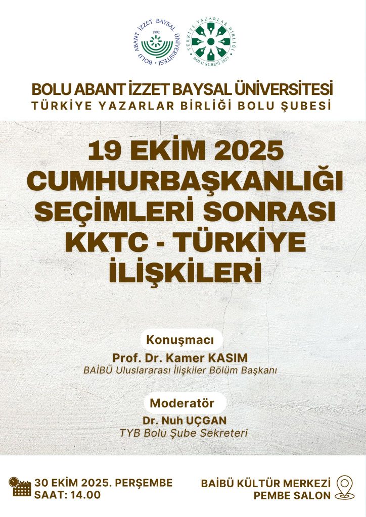 📅Tarih:30 Ekim 2025 ⏰Saat: 14:00 🏢 Yer: BAİBÜ Kültür Merkezi Pembe Salon