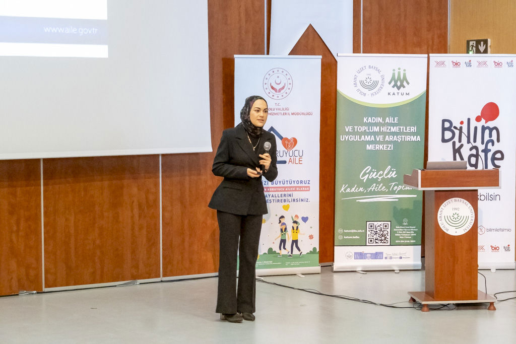 Etkinliğe BAİBÜ Rektör Yardımcısı Prof. Dr. Coşkun Karaca, KATUM Müdürü Doç. Dr. Özden Gezer Oğuz, BAİBÜ Öğr. Üyesi Prof. Dr. Cengizhan Yıldırım, Bolu Aile ve Sosyal Hizmetler İl Müdürlüğü Koruyucu Aile Sosyal Çalışmacısı Tuğçe Çay ve akademik-idari personel ile öğrenciler katıldı.