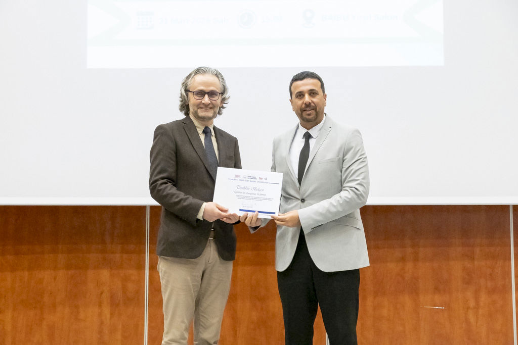 Programın sonunda BAİBÜ Rektör Yardımcısı Prof. Dr. Coşkun Karaca etkinlikte sunum yapan Bolu Aile ve Sosyal Hizmetler İl Müdürlüğü Koruyucu Aile Sosyal Çalışmacısı Tuğçe Çay, BAİBÜ Öğr. Üyesi Prof. Dr. Cengizhan Yıldırım ve Eşi Meryem Yıldırım’a teşekkür belgesi verdi.