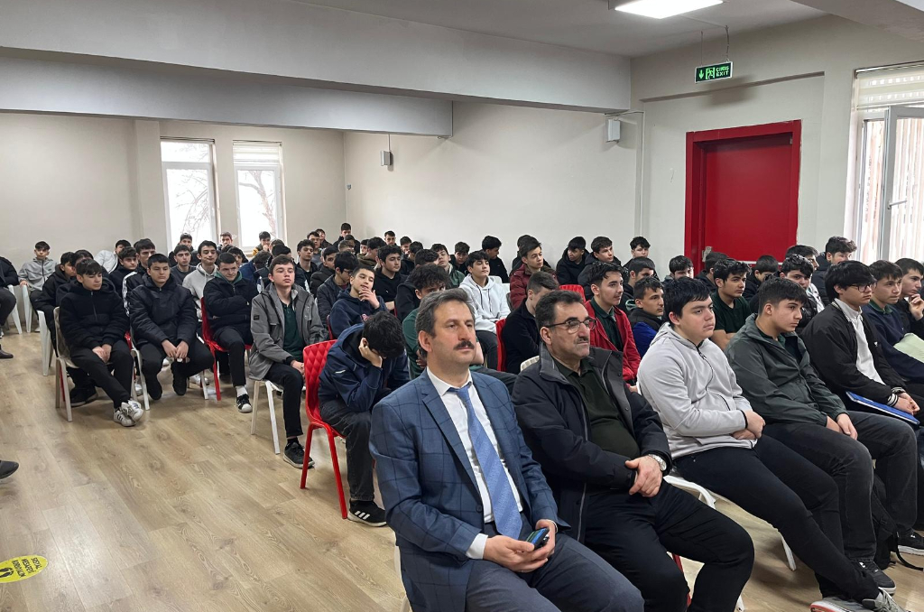 Üniversitemiz Atatürk İlkeleri ve İnkılap Tarihi Bölüm Başkanlığı’nda görev yapan Öğretim Görevlisi Dr. Emine Aşçı, Mimar İzzet Baysal Mesleki ve Teknik Anadolu Lisesi öğrencilerine “Bayrak ve Bayrak Sevgisi” temalı konferans verdi.
