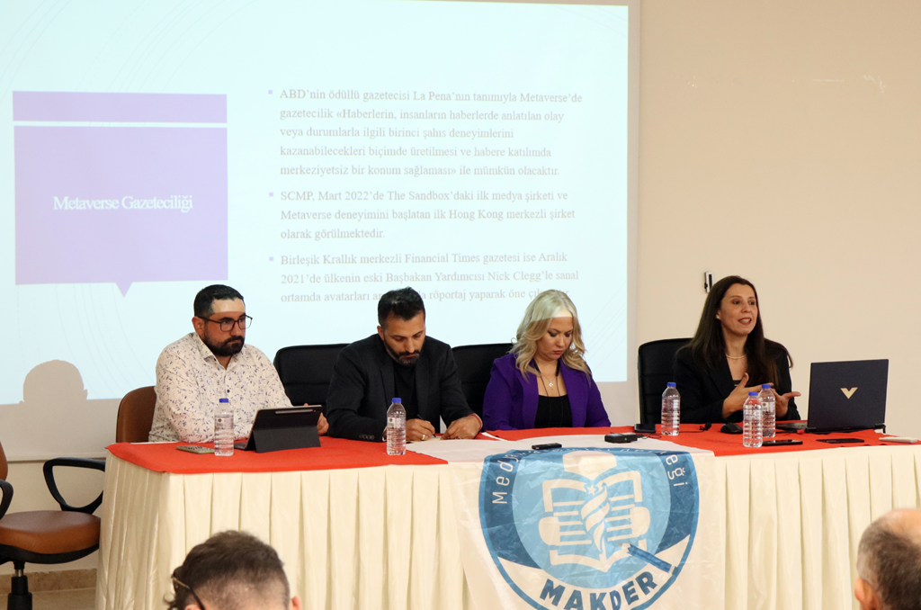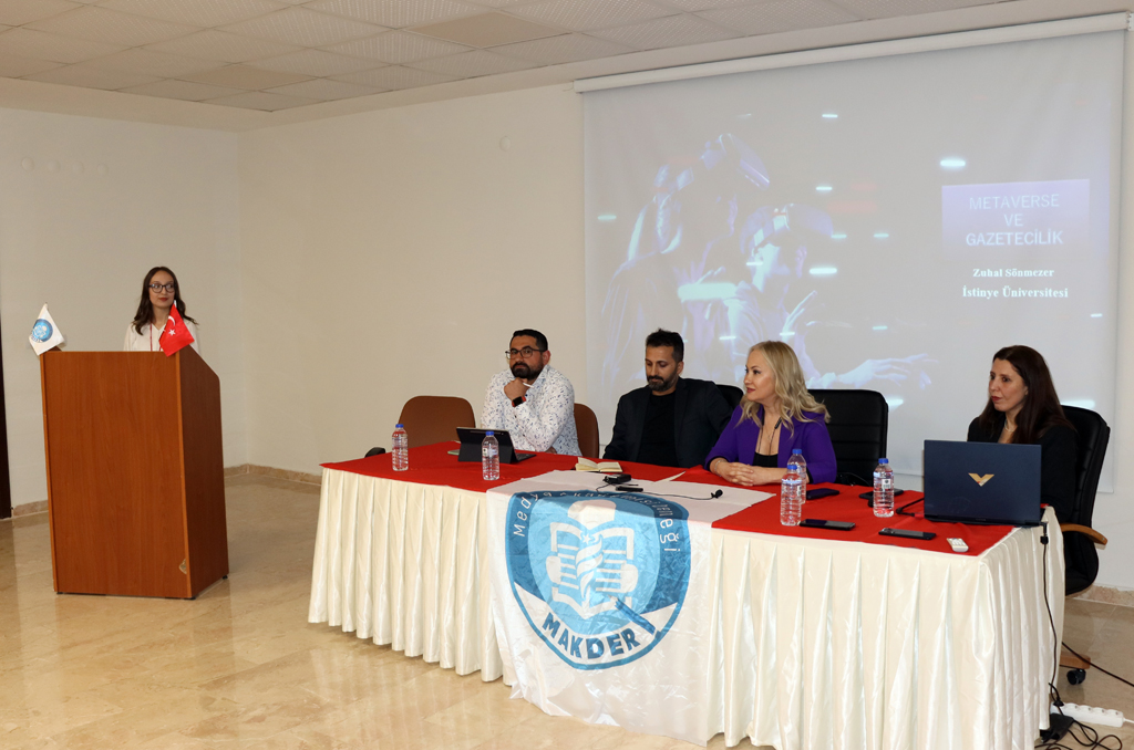 Medya Söyleşileri etkinliğinde; MAKDER Genel Başkanı Selçuk Taşdemir, TV100 Haber Editörü ve Muhabir Müge Yücetürk, TGRT Haber Gündem Editörü Yusuf Özgür Bülbül, İletişim Uzmanı ve İstinye Üniversitesi doktora öğrencisi Zuhal Sönmezer ve Milat Gazetesi Ekonomi Müdürü Fırat İpek öğrencilerle bir araya geldi.