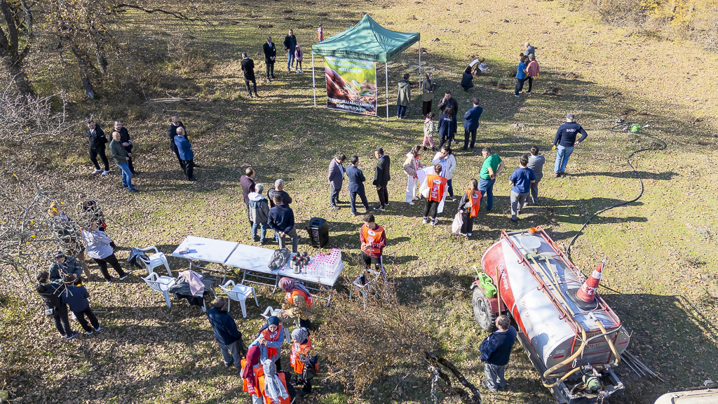 Alişarlı’nın sözlerini noktalamasının ardından katılımcılar çam fidanlarını toprakla buluşturup, toprakla buluşan fidanlara can suyunu verdi. Fidan dikiminin ardından katılımcılara çay simit ikram edildi.