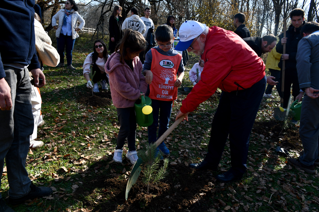 Üniversitemiz Çevre Koordinatörlüğü 11 Kasım Milli Ağaçlandırma Günü kapsamında çam fidanlarını toprakla buluşturma organizasyonu düzenledi.