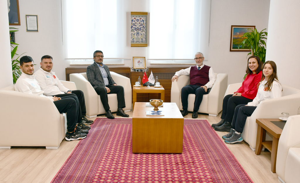 Ziyaretten duyduğu memnuniyeti ifade eden Rektör Yiğit; nazik ziyaretlerinden ötürü Karlı, Kocaağa, Akman ve milli sporcularımıza teşekkür ederek başarı dileklerini iletti.