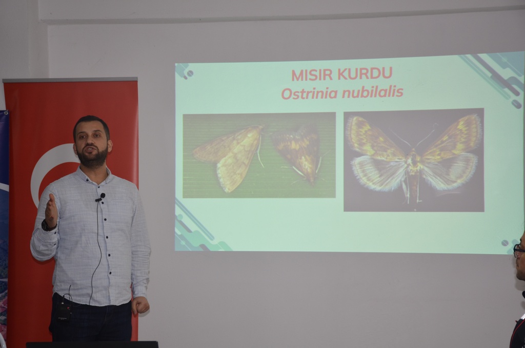 Son olarak, BAİBÜ’den Dr. Öğr. Üyesi Abdurrahman Sami Koca, mısır zararlıları konusunda kapsamlı bir sunum gerçekleştirdi ve çiftçilere uygulamada karşılaşabilecekleri sorunlara yönelik değerli bilgiler sundu.