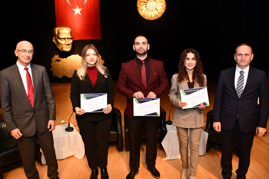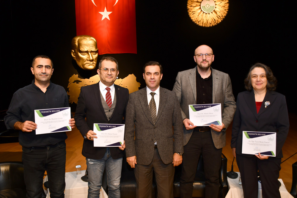 Panelin ardından Rektör Yardımcımız Prof. Dr. Aydın Him panel başkanı ve panelistlere teşekkür belgesi verirken Bolu İl Milli Eğitim Müdürü Dr. Cemil Sarıcı ve BAİBÜ Eğitim Fakültesi Dekanı Prof. Dr. Üzeyir Ok etkinliğin sunucularına teşekkür belgesi verdi ve toplu hatıra fotoğrafı çekinilmesiyle etkinlik sona erdi.