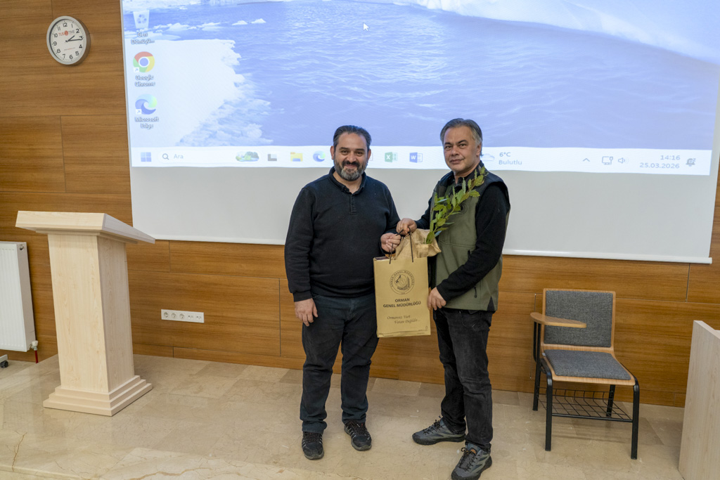 Etkinliğin sonunda Orman Bölge Müdürlüğü yetkilileri Üniversitemize defne ağacı hediye etti.