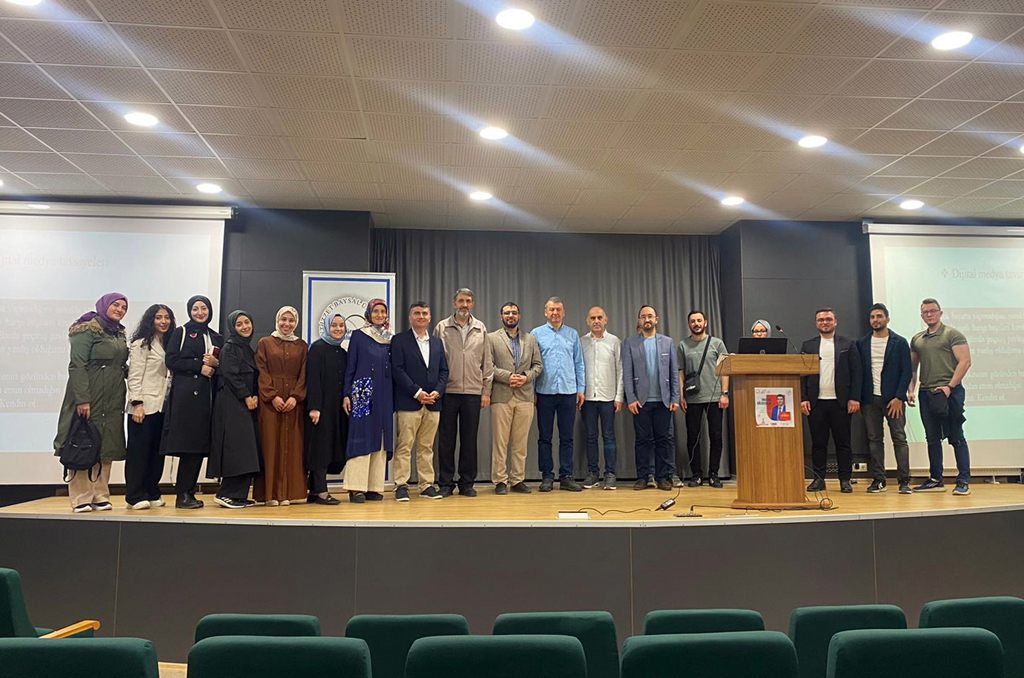 Programa akademik ve idari personelin yanı sıra öğrenciler katılırken Üniversitemiz İletişim Fakültesi Öğr. Üyesi Doç. Dr. Ercan Aktan “Dijital Dünyada Ruhun Yeni Hastalıkları” adlı bir sunum yaptı. 2020 ve 2021 yılları arasında sosyal medya kullanım dikkat çekici artışı hakkında bilgi veren Aktan, dijital hastalıklardan bahsetti. Sosyal medya kullanım artışının, bağımlılıklara yol açtığını dile getiren Aktan sosyal mecraların insanlara olan yararlarının yanında dijital hastalıklara yol açan zararlarını da dile getirdi.