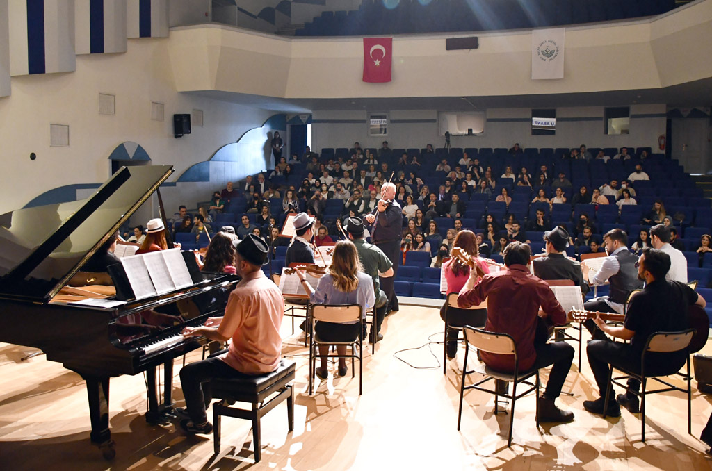 Öğr. Gör. Savaş İnciroğlu’nun Popüler Müzik ve Uygulamaları dersi kapsamında hazırlayıp yönettiği nostalji konseri, 25 kişiden oluşan Renk ve Ahenk Topluluğu üyelerince icra edildi. Topluluk üyeleri; valsten tangoya, caz ve latin müziğinden Türkçe pop ve oryantal ezgiler ile film müziklerine kadar geniş bir yelpazede sevilen nostaljik eserleri çalıp seslendirdiler.