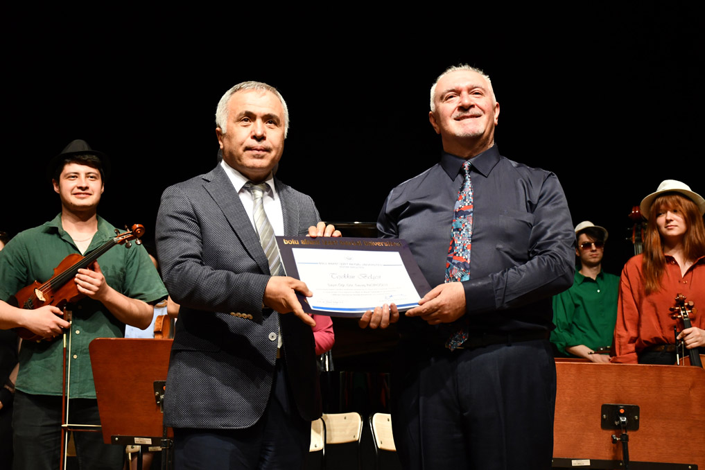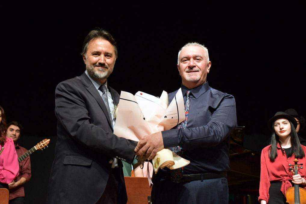 Konserin sonunda Öğr. Gör. Savaş İnciroğlu’na, Rektör Yardımcısı Prof. Dr. Samettin Gündüz ve Prof. Dr. Ahmet Serkan Ece tarafından teşekkür belgesi ve çiçek takdim edildi.