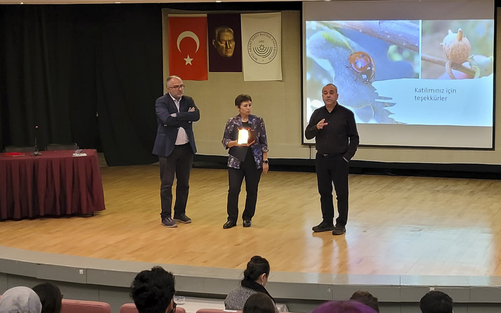Filogenetik, moleküler sistematik ve popülasyon genetiği üzerine çalışmaları bulunan Mutun, her yıl yaptığı arazi çalışmalarından örnekler anlattı; çalışmaları sırasında keşfettiği yeni türlerden birine merhum İzzet Baysal’ın ismini (cynips izzetbaysali) diğerine ise Anadolu ismini (andricus anatolicus) verdiğini vurguladı.