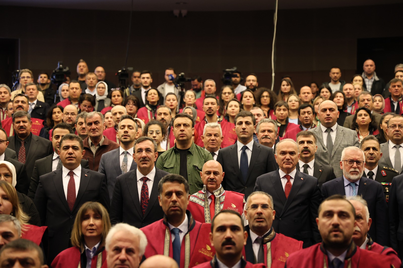 Cumhurbaşkanı Yardımcısı Cevdet Yılmaz’ın onur konuğu olarak teşrif ettiği açılışa; Düzce Valisi Selçuk Aslan, Düzce Milletvekili Ayşe Keşir, Düzce Belediye Başkanı Dr. Faruk Özlü, Düzce Üniversitesi Rektörü Prof. Dr. Nedim Sözbir, Bolu Abant İzzet Baysal Üniversitesi Rektörü Prof. Dr. Mustafa Alişarlı, Düzce Üniversitesi Kurucu Rektörü Prof. Dr. Funda Sivrikaya Şerifoğlu, il protokol üyeleri, akademik-idari personel ve öğrenciler katıldı.