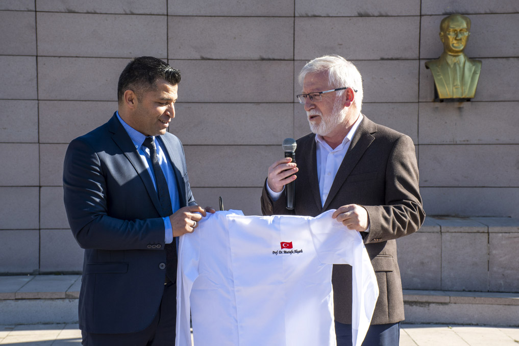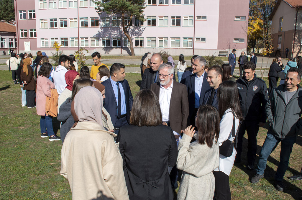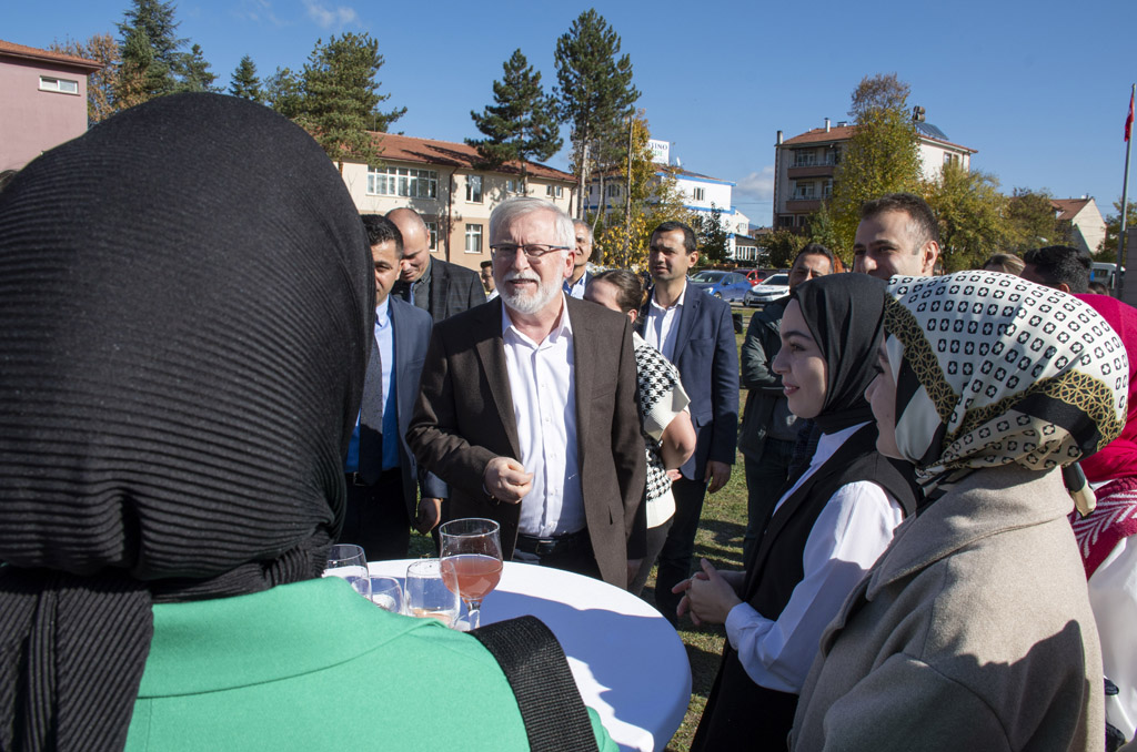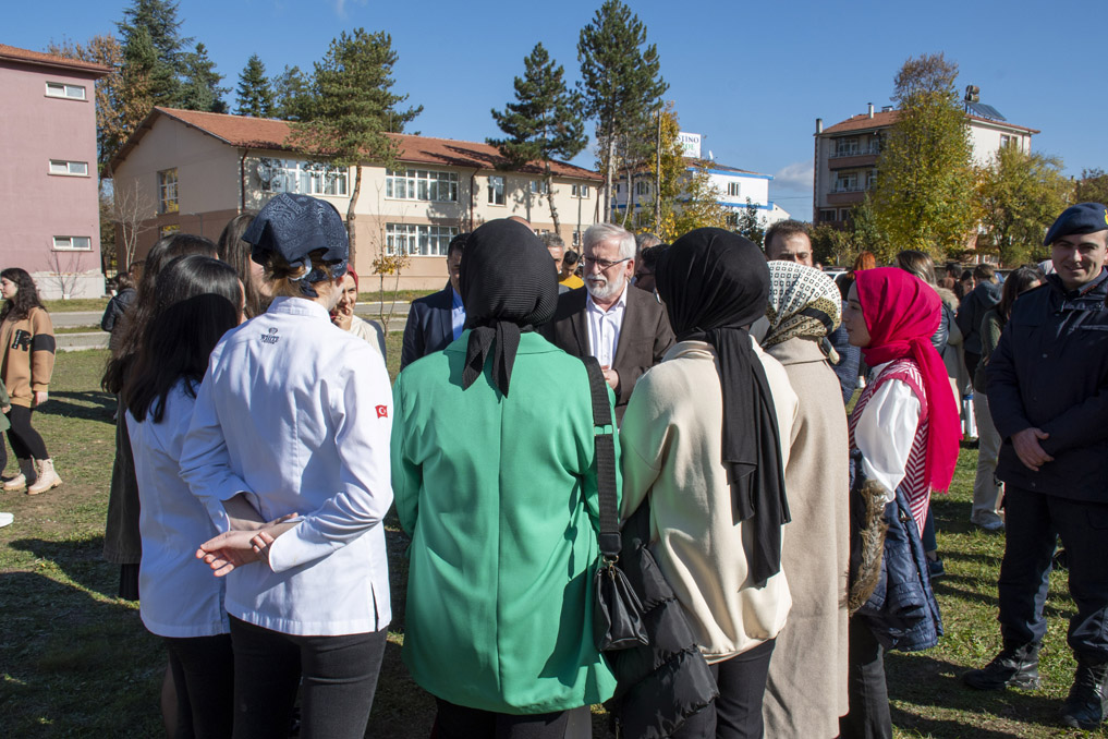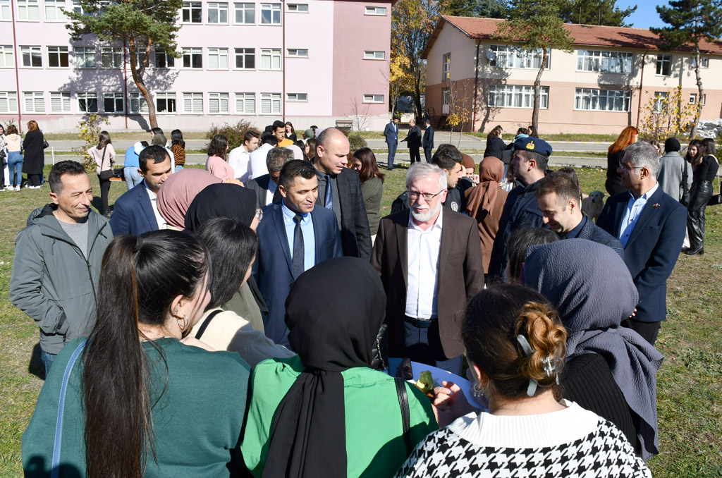 Alişarlı’nın konuşmasını sonlandırmasının ardından Mengen MYO Müdürü Dr. Öğr. Üyesi Osman Çavuş BAİBÜ Rektörü Prof. Dr. Mustafa Alişarlı’ya aşçı gömleği hediye etti. Sonrasında Alişarlı etkinliğe katılan öğrencilerle bir süre sohbet etti.